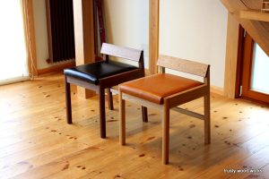 ナラ材で作ったカウンター用のハイベンチ。下段に補強を兼ねた足置きがあります。カウンターの高さに合わせて、お作りできます。…