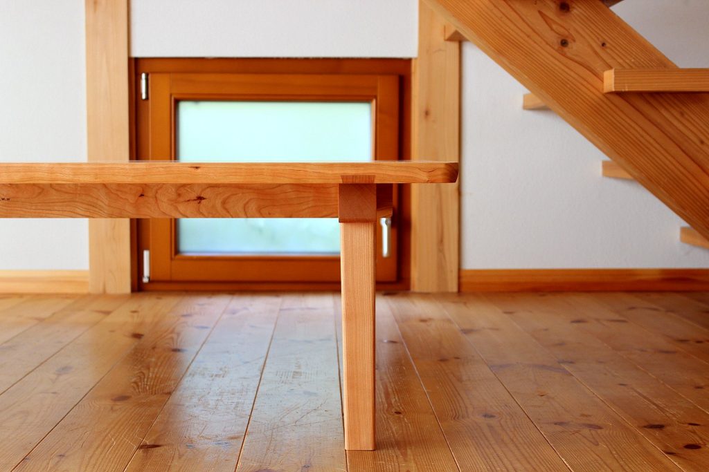 脚部をそのまま天板の反り止めとして吸い付き蟻桟という工法で仕上げてあります。